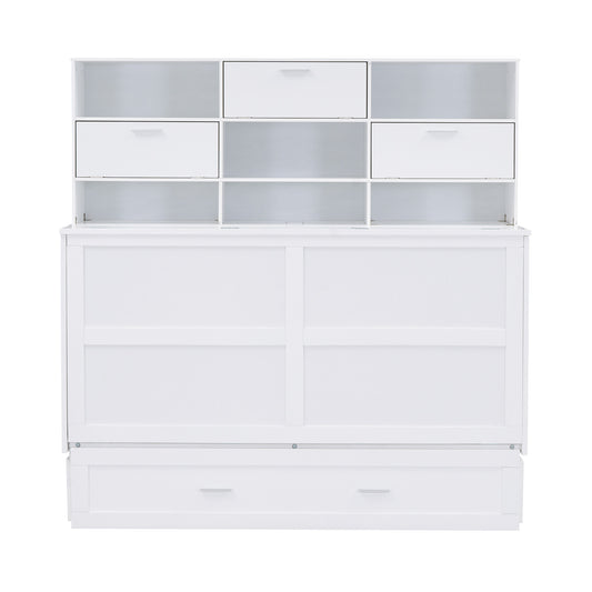 ueen Size Murphy Bed with Bookcase, Bedside Shelves and a Big Drawer, White